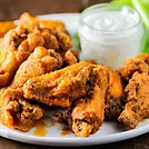 Oven-baked chicken wings (6pcs) mixed with buffalo sauce.
