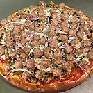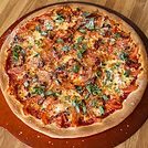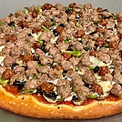 Ingredients: Salami, pepperoni, Italian sausage, linguica, mushrooms, green bell peppers, and black olives.