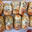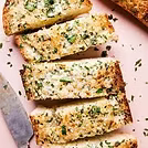 Baked bread with garlic and parsley butter, topped with mozzarella cheese